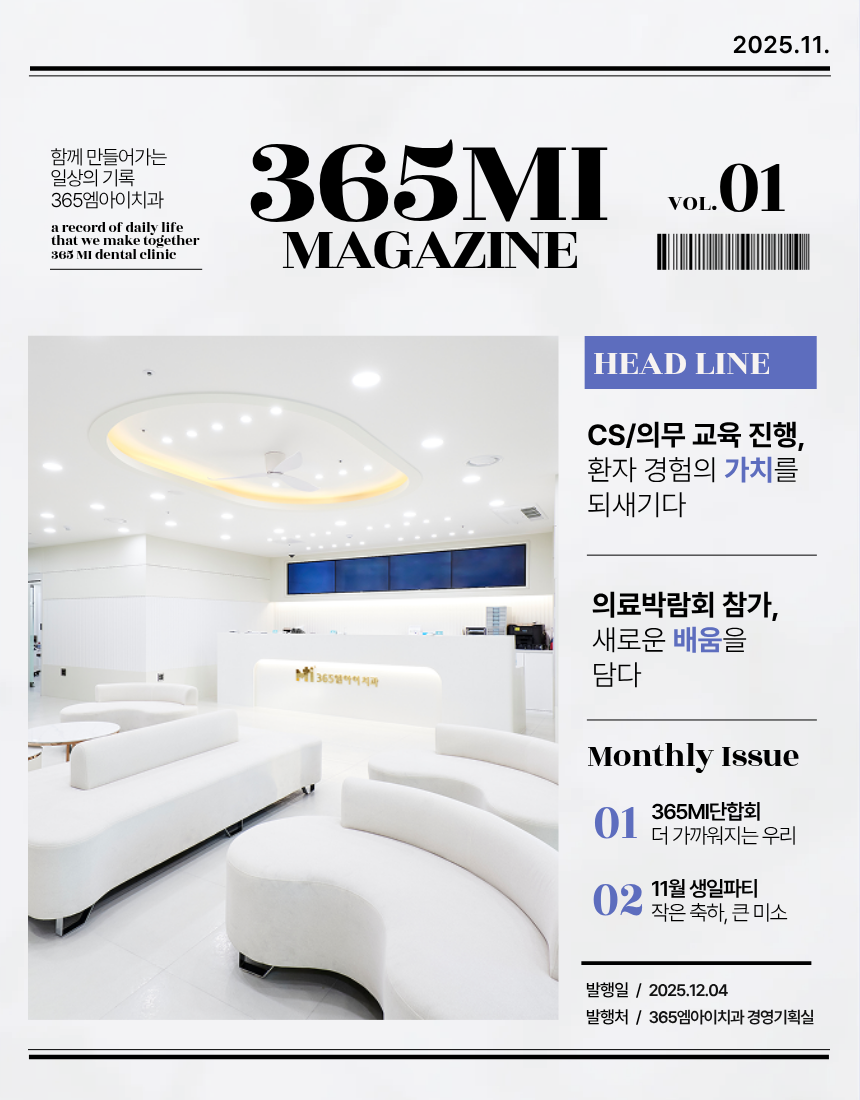 365엠아이치과의 새로운 11월 매거진이 발행되었습니다😃