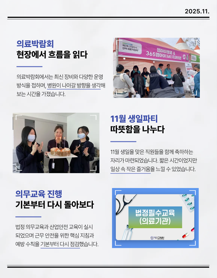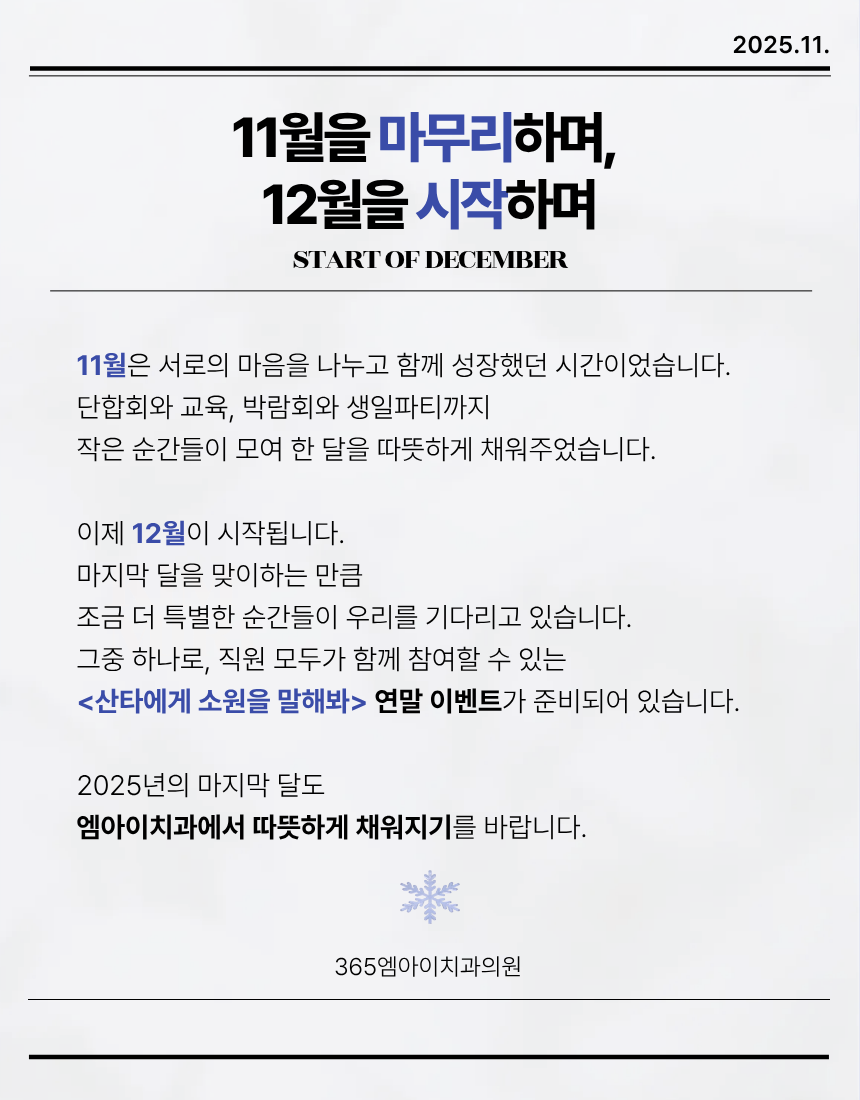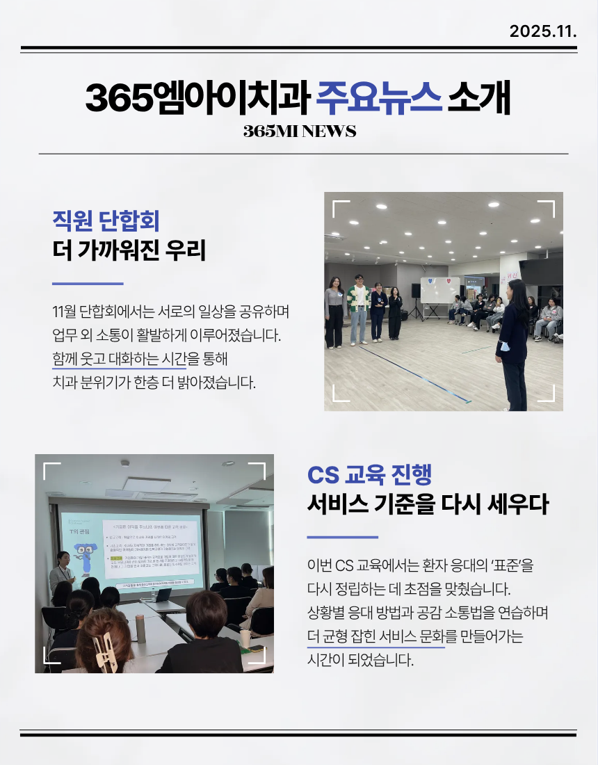 작은 순간들이 모여 한 달을 따뜻하게 만들었던 365엠아이치과의 11월 소식을 소개합니다❤️